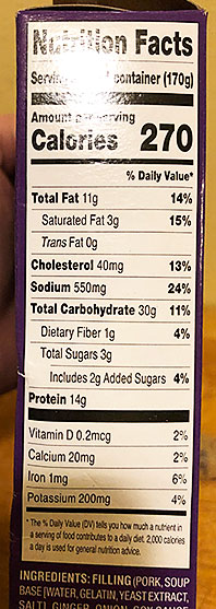 CONS – Where these lose ground with me, are the actual wrappers. I wish they had better quality wrappers. The dough wrapper here just turned too soft and mushy too easily. Yes maybe thats just what sitting in hot soup does to them, though frankly I must have eaten a thousand bowls of steaming hot wonton soup in my lifetime and never find the wrappers as soft and mushy as these became. Second, the “chicken soup” in them? Minimal. At best. Not nearly enough soup inside (though if eaten in broth, this may be a moot point, I admit).