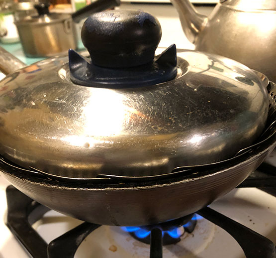 PAN FRYING YOUR DUMPLINGS: One can boil these but personally I make these mostly as Pot Stickers or Gyoza using a well-seasoned black cast iron pan. If you don’t have one of those just use a good non-stick pan. Swirl a tablespoon or 2 of neutral vegetable oil in the pan with medium heat. Put your frozen dumplings in bottoms down, careful they don’t touch each other or they will stick together. You will hear them start to sizzle in a bit. Let them cook without touching them till they are nice golden brown on the bottom, maybe 4-5 minutes…You can check one every once in a while. You don’t want to burn them however you do want very browned bottoms, Well I do! When they are browned, toss about 3-4 tablespoons of water (or stock) into the pan and immediately put a cover on! Stand back of course as they may spit or really steam up at you. Lower the heat a little. If you have a clear glass cover that’s ideal so you can see whats going on inside but if you don’t, any cover that fits tightly will be fine. We want to let them steam until the water is just about all gone which may take about 6-8 minutes. Check when you think they are done. When they are almost ready if you put a tiny bit more oil when the water is all gone and let them keep cooking they can get a quite crispy bottom which is lovely, but this step is tricky, and optional. Anyway this is the reason these dumpling are called “pot stickers” as they do tend to stick to the pan and not want to leave it! If they are a bit stuck use a thin spatula to gently help release them, being careful not to tear the skins.