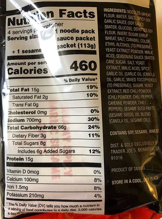 Compared to the original Soy/Sesame version, this Spicy version has a bit less sodium listed, now 700mg sodium here (vs. 920 mg in the original soy and sesame version). That’s good. Especially as the sauce here even tastes better.