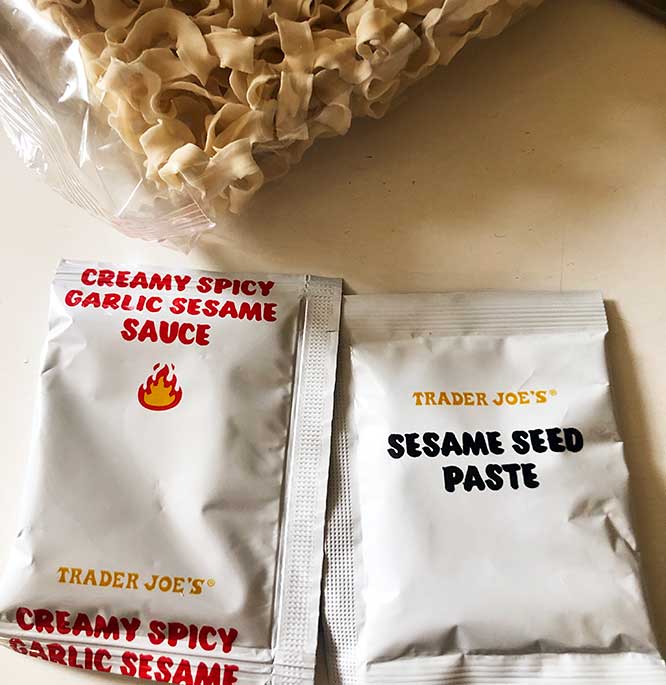 Trader Joe’s Squiggly Noodles SPICY GARLIC SESAME SAUCE version are $4.99
