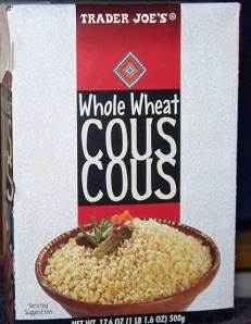 Couscous is generally made out of semolina wheat. Trader Joe’s sells this whole grain version made from whole durum semolina. The box says PRODUCT OF FRANCE (yeah baby!) The French love couscous. I have lived in Paris where they have couscous restaurants almost like we have pizza places as there are so many people of Algerian and Morrocan origin.