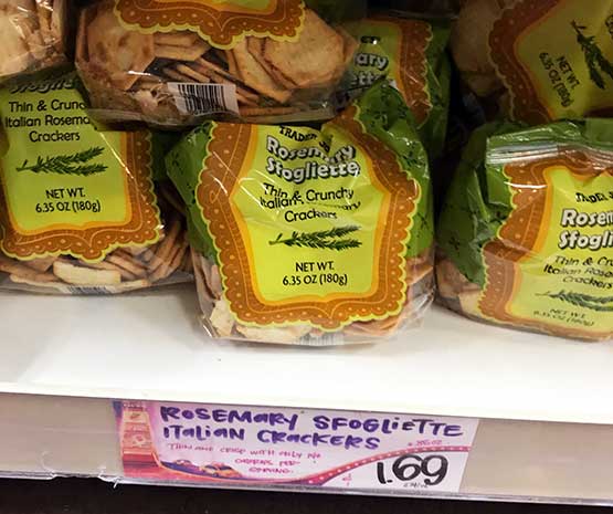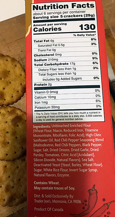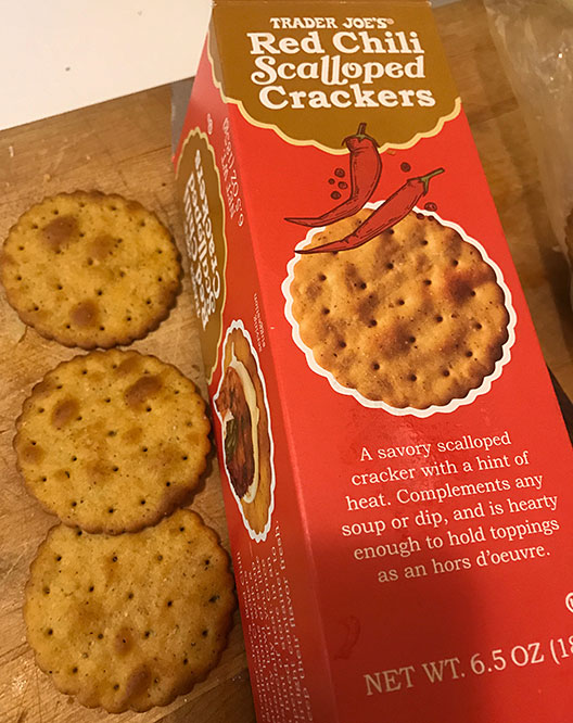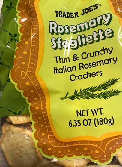 Trader Joe’s WHEAT CRISP CRACKERS to me seem to be TJ’s version of the classic cracker. All I can say is these new crackers taste really good to me. They have a lovely wheat-y taste from whole wheat, which is listed as the second ingredient.
