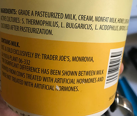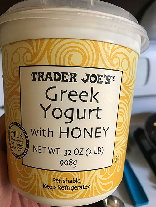 This is what I have started to buy at Trader Joe’s pretty regularly. It’s very lightly sweetened from the honey and I find perfect especially for breakfast with some fruit and my granola in the morning. But I also find other uses for it. I use it like “creme fraiche” or whipped cream as a topping for desserts with a bit lower calorie count than either of those. TJ sells it in a big 32 oz container for $4.99 or small cups for $1.29. It’s quite yummy.