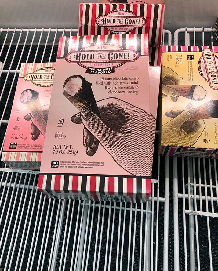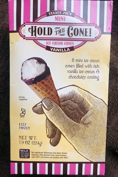 These MINI CONES really became popular fast. They may be Trader Joe’s most popular dessert item now. They’ve come out with and added a number of flavors besides the original (Vanilla) one so now you will see a few flavors like Strawberry, Mint and Chocolate…