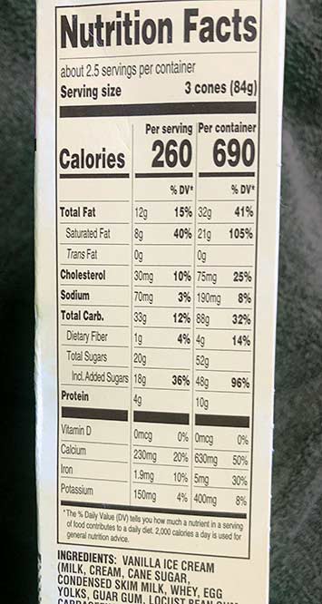 They are small mini cones, kind of a perfect size when you are in the mood for a little ice cream snack. One is maybe about 5 or 6 bites. You could easily eat two or three! Even if you did eat three, according to the box that would be 260 calories, not too crazy bad.