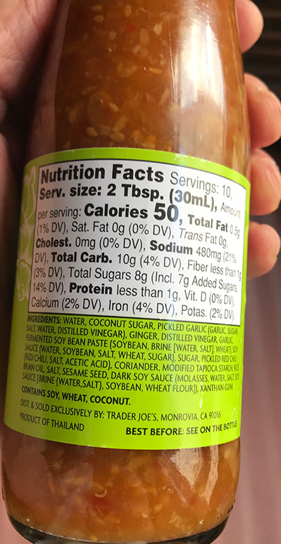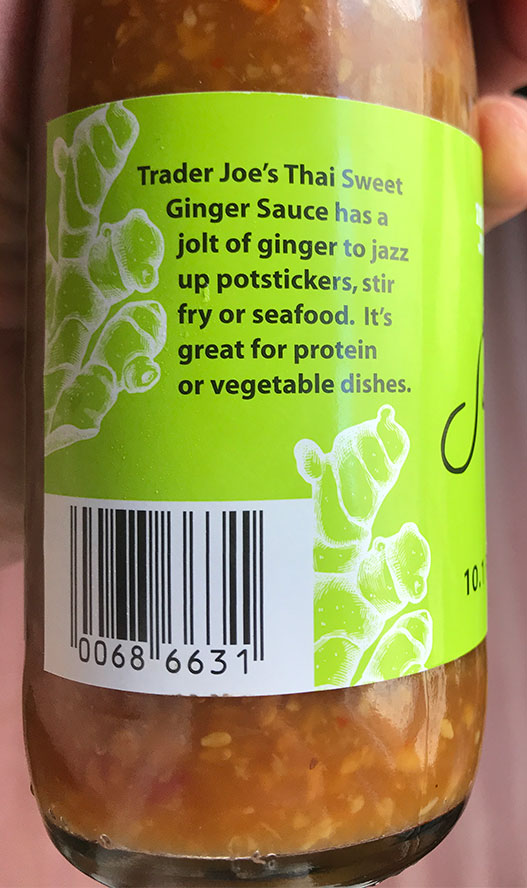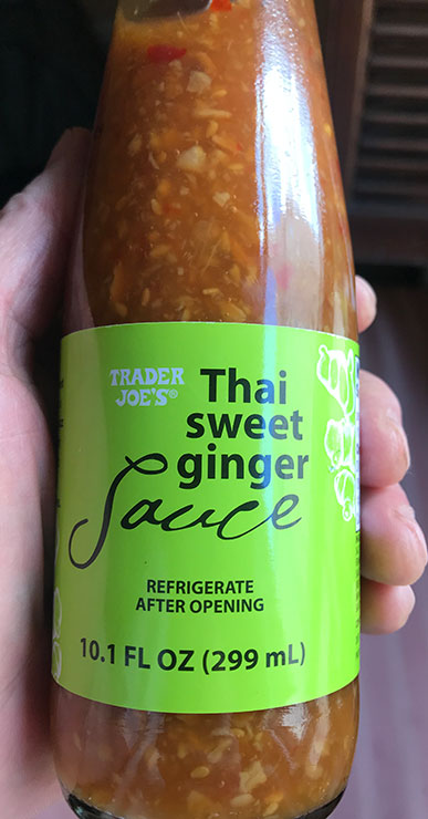 Trade Joe’s new product: THAI SWEET GINGER SAUCE. It seems to be flying off the shelves, people seem to love it. I am guessing mostly for all the frozen DUMPLINGS they buy?