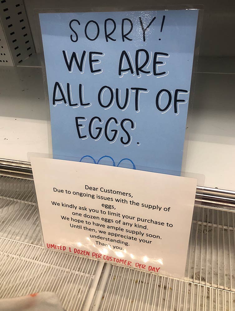 Related to this of course is the real reason the price of eggs have increased is the Avian Flu and not so much inflation. Supply and demand.