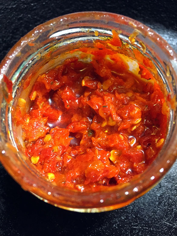 BOMBA is a condiment made from crushed up fresh Calabrian red chile peppers that get fermented. By now I’m sure you’re well aware about how fermentation adds complex flavor elements to foods. When you taste this paste you will notice a little bit of funkiness. That is it’s fermentation and it adds a magical addition of, you guessed it, UMAMI. Giving this stuff more complexity than just a “hot sauce”. Now Bomba sauce is a bit spicy but it’s not really spicy. It’s nowhere near a knock-your-head-off hot sauce, skulls on the label, kind of spicy. This has a tolerable level of spicy PLUS flavor! As a spiciness test, I just put a small spoon of Bomba in my mouth. While I got “yes this is spicy”, it didn’t want to make me want to drink a glass of milk or anything. I got something beyond just “spicy”, there that funkiness, even a bit of sweetness. So depending on the amount you use, you can adjust the level of spicy to your taste and palate, and if you add even just a tiny bit to dishes – I’m talking a quarter of a teaspoon – it will add wonderful flavors that may surprise you.