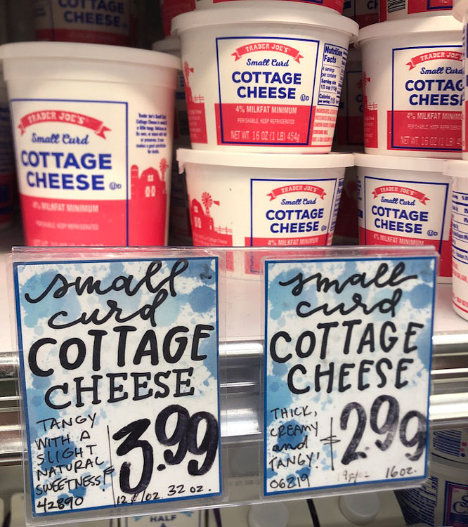 For $2.99 you can buy their excellent of cottage cheese in a one pound container.