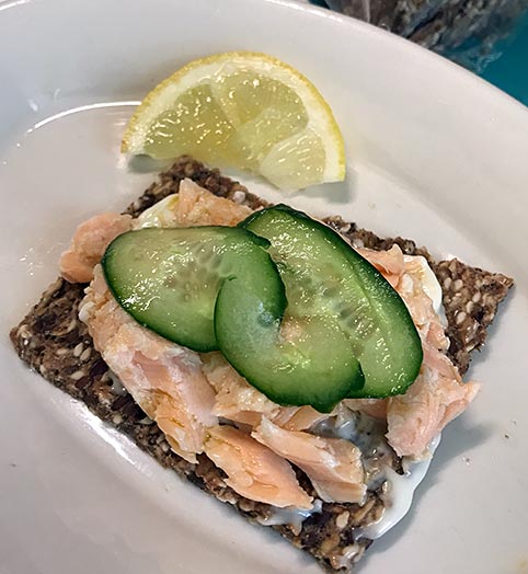Salmon and cucumber on crispbread – open faced sandwich