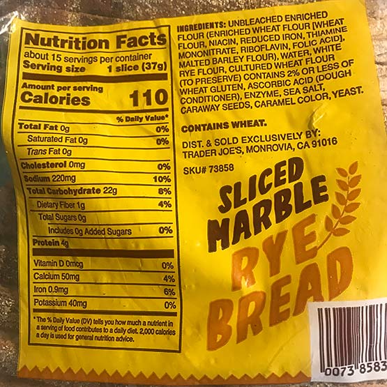 These can be served in many ways. Want super easy? Just grill them up a bit and put them on a good bun with mustard and sauerkraut. Maybe the TJ’s Brioche Hot Dog Buns! I did a “German style” dish with them with sauteed potatoes. I grilled the sausages on the stove. Along side the sausages, I made sautéed vegetables (potatoes, onions, peppers and some cabbage). The sausages with these vegetables were a really good combination and we enjoyed it all with slices of TJ’s MARBLE RYE bread and DIJON MUSTARD and some of TJ’s excellent SAUERKRAUT. Very German. OK the Dijon was French.