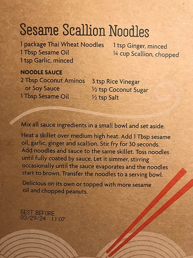 At $1.25 per noodle pack, these are an excellent choice for anyone looking to elevate their home cooking without breaking the bank. TIP: Spend another $1.29 on a package of scallions (cilantro too perhaps? a package is $2) and you will have those for other dishes…