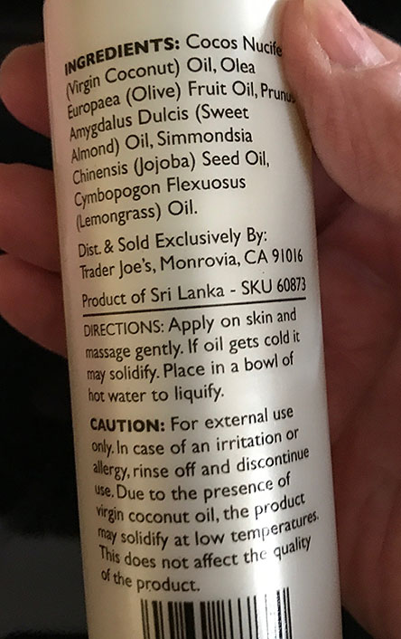 In that case I will probably use this oil: TJ’s Organic Sunflower Oil. It’s a good neutral oil, obviously made from sunflower seeds, and Organic to boot.
