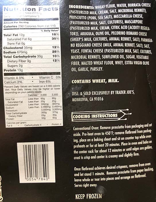 How does this TJ pizza rank among all the other offers in the pizza department from Trader Joe’s? To me it’s up there. However I might rank a few others they have, just a hair above this one (such as the Pizza Parlanno and the Buratta, Prosciutto and Arugula one) as they have “more going on” of course. For a simple Neapolitan style pizza, this is quite good, if thats what you are looking for.