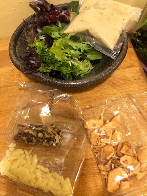 Dressing: I liked the included “apple vinaigrette” which matches well with all the other ingredients. Additions you could add? This would be even better with a bit of cut up fresh apple. Maybe some dried cranberries?