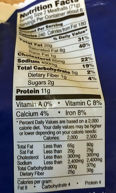 Trader Griotto’s (frozen)Flame Broiled Italian Style Fully Cooked Meatballs