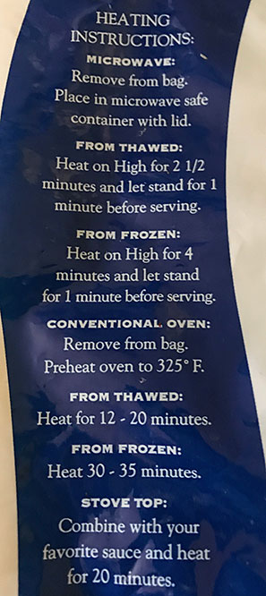 First, let us be realistic. Are these Trader Joe’s frozen meatballs anywhere as good as my own homemade ones (which in all modesty are pretty good?) Of course not. However, making meatballs is kind of a lot of work. So I wanted to try these Trader Joe’s all beef “Meatballs Italian Style” to see if they are any good. We did enjoy actually them with my own tomato sauce for a pretty easy dinner. So these might be worth giving them a try to see what you think. The dish I made with these turned out tasty. I made an easy quick sauce: olive oil, garlic, onion, tablespoon of tomato paste, can of diced tomatoes, grated pecorino cheese and basil – a recipe is below). Of course you can just use a bottle of sauce you lazy bones, that’s fine. I put the meatballs in the sauce and simmered them for 30 minutes to hopefully get them flavored with the sauce. They turned out pretty well, my main complaint being they had a slightly rubbery texture. Honestly I don’t know if they always do or it was my fault defrosting them (or not). I would usually thaw something like this in the fridge overnight as I always recommend, but this was a last minute dinner idea and I thought maybe I could just put the frozen meatballs into the sauce and slowly defrost them on low in the sauce (which the package does kind of say). Is that why they came out a bit rubbery? Next time I’ll defrost them slowly and see. Anyway I served the meatballs and sauce and some of TJ’s fantastic Country Loaf bread I had found. We did kind of a “meatball sub” with these which was actually pretty tasty. A few night’s later, I made Ziti with the leftover meatballs & sauce – also tasty. So my take is these are worth giving a try, either with your own sauce or your favorite TJ’s sauce. I do suggest doing a proper defrost (thaw in fridge night before). Also I will brown up the thawed meatballs even more in olive oil before adding to sauce. Browning meat gives lots of flavor. I recommend you simmer these in sauce for at least a 1/2 hour to absorb flavors. These ITALIAN MEATBALLS were about $4.50 for a 1 lb bag. FYI , TJ sells other versions, one made with Turkey and one Meatless, all of which you will find in the frozen section near these.