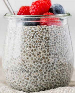 These teeny blacks seeds are packed with protein, Omega 3‘s and other goodies, again especially fiber. When soaked in liquid the seeds both swell up and gel up absorbing twenty seven times their weight in water. By the way the chia seed gel smooths things in your digestive tract so can help keep you regular. Another benefit.