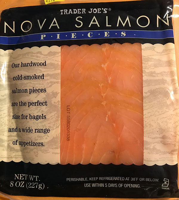 The 4 oz. package was $6.49. For me this stuff is a Miss. I rate it somewhere between a “Meh” and a Rant. Frankly my advice is pass on this but get either of those other two good seasoned smoked salmon Trader Joe’s offers.