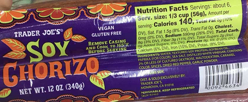 You could use it as Soy Chorizo used in a taco filling mixed with potatoes, onions, and eggs; see the pic for a great filling with these ingredients on a TJ Habanero Lime flour tortilla) mixed with other veggies. Use it crumbled on top of eggs (delicious) or mixed in an omelette. A recipe idea can be found here:
