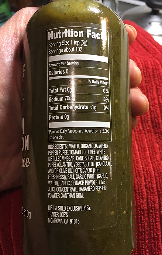 Trader Joe’s as you know carries a whole bunch of condiments and sauces, many being outstanding. It has quite a few hot sauces, most of which are VERY good. TJ’s Green Dragon Hot Sauce is one of my favorite Trader Joe’s items, along with Bomba and Peri-Peri and of course ZHOUG).