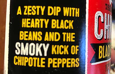 “A zesty dip with hearty black beans and the smokey kick of chipotle peppers”