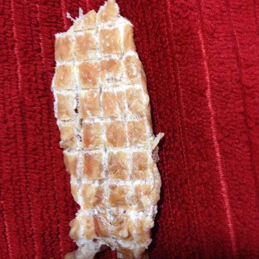 These are simply all natural, strips of chicken breast that have been dried. They are sold as Dog Treats. Now I don’t have a dog. But I have 2 cats. They love chicken. I thought I am going to get a pack of these “dog treats” and see if my cats like them. Did I say “see if they like them?” Who are we kidding? When I opened the package up, they could smell it instantly and went nuts, pawing at me to give it to them. Relax, I don’t give my cats a whole strip, first I break one into smaller pieces, easy to do as they have score marks on them. When I give these to my cats and they go crazy…chewing, chewing, chewing….crunching them up till they are gone as they devour these treats. Who says, “these are just for dogs”! Equality, people! Cat rights!!