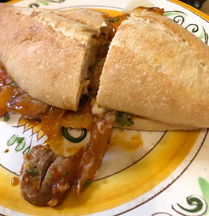 PIZZA PARLANNO with Italian sausage, uncured pepperoni, roasted peppers and onions